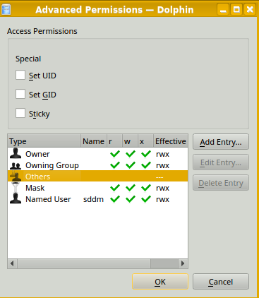 (6th December 2016, 16:49)rocky7x Wrote: Tried it, doesn't work. Also tried to add the user sddm to my own user group in /etc/group - doesn't work. Now, with this, sddm definitely has access to my .face.icon file, but doesn't show it. It did prior to the 5.8.3 update though...