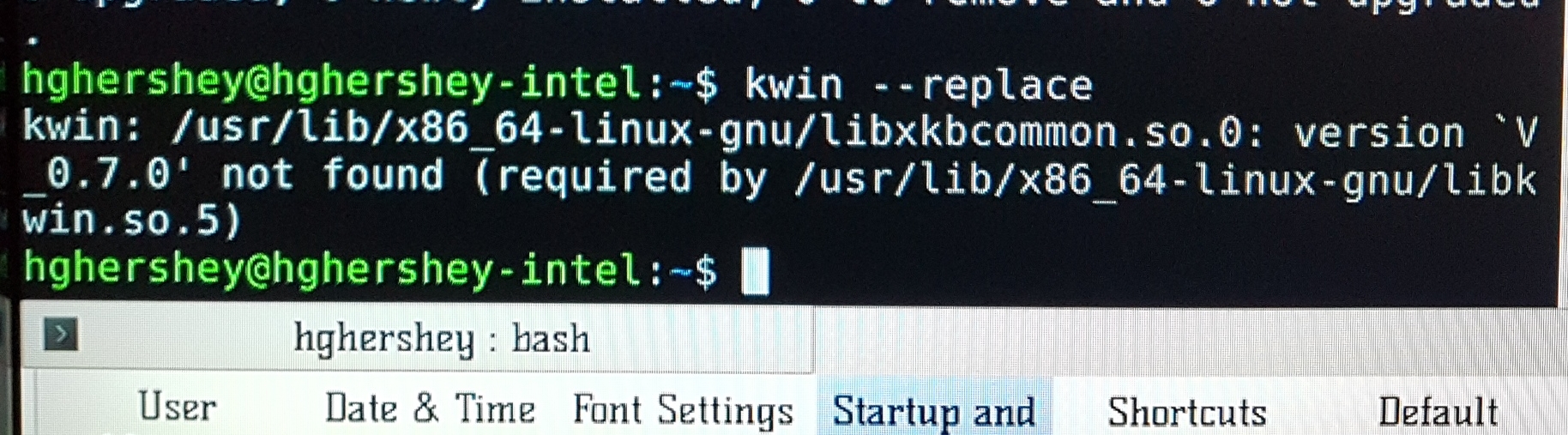 I try running "kwin --replace" in terminal and it says kwin: usr/lib/x86-64-linux-gnu/ libxkbcommon.so.0 version not found