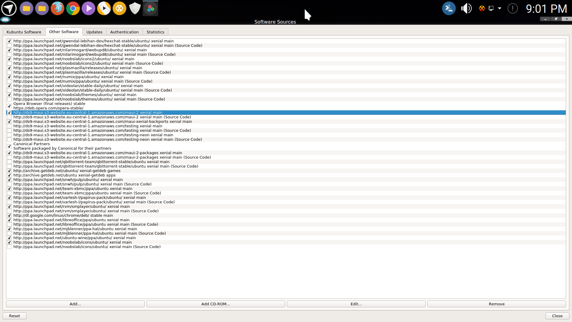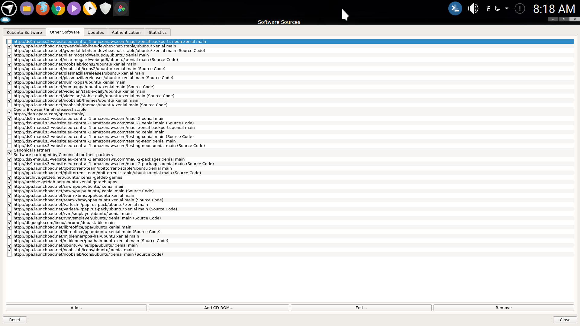 First you have maui-xenial-backports checked which we have by default unchecked. (See blogpost on the homepage) and then I can't seem to see the maui-xenial-backports-neon source anywhere.