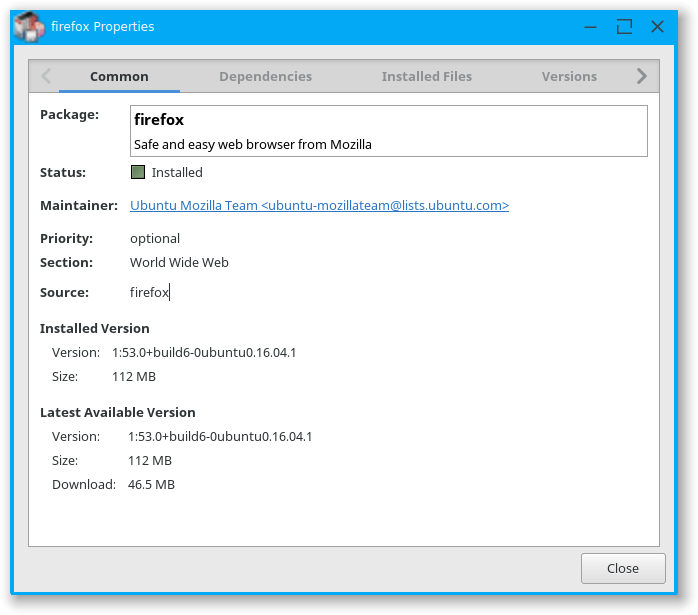 I'm on v53.0.  See screenshots from Synaptic.