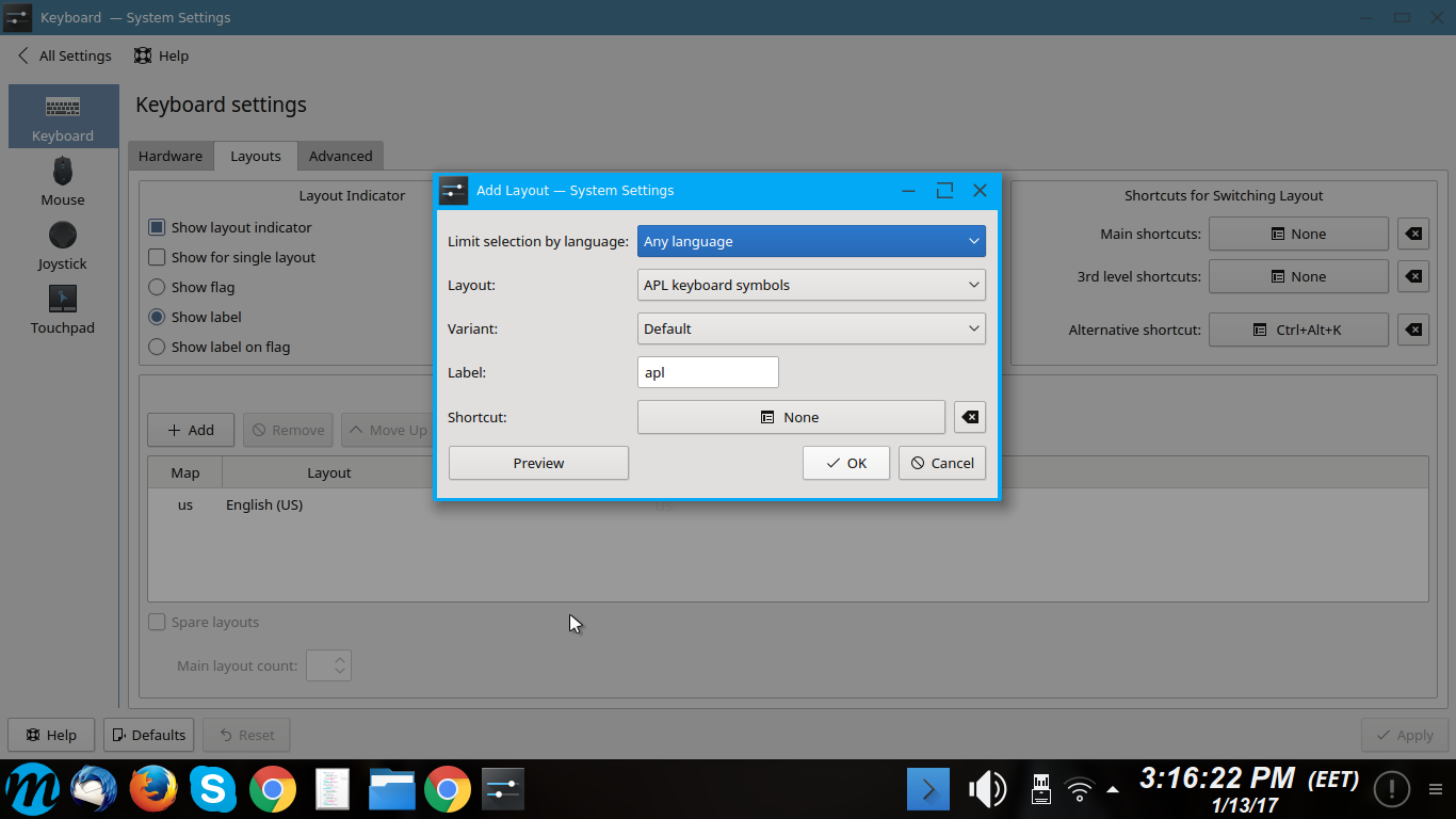 Keyboard layouts > press add